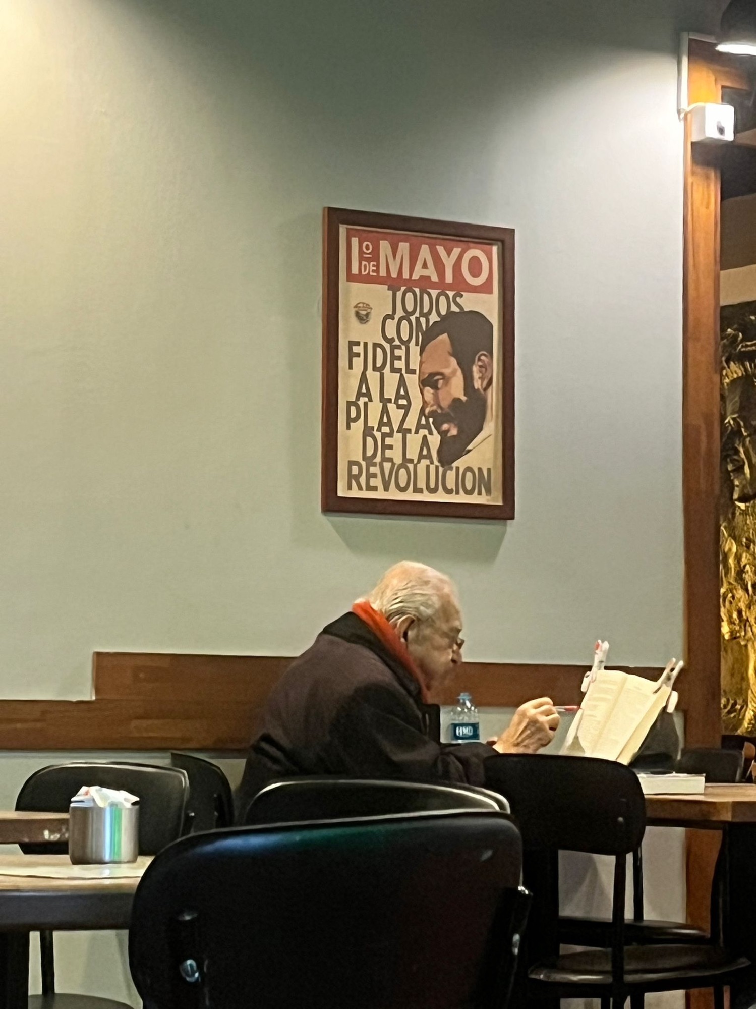 Şimdi bir kafede, Fidel’in posteri altında oturuyorum. Gençler bakıyor ve geçip gidiyorlar. Kimileri görmüyor bile. Onlar için belki bir dekor. Benim içinse koca bir hayat.